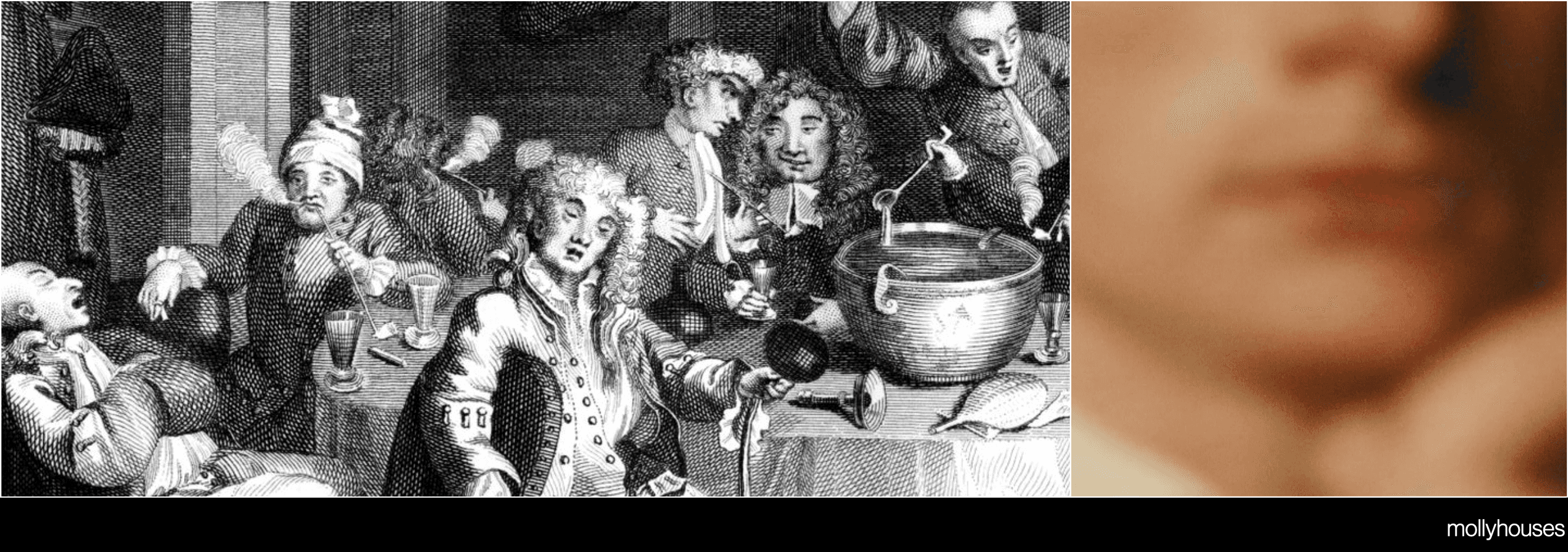 In the centuries following the Act’s establishment, the threat of execution forced homosexuals to gather in secret. Over time, this enforced secrecy gave rise to a rudimentary queer subculture that flourished in 18th-century London, giving birth to spaces known as Molly Houses, which for some time existed outside the purview of law and religion. The people who frequented these spaces referred to themselves as Mollies, which, because there was no other term except the Biblical or legal ‘sodomite’ or ‘bugger’, became a positive form of colloquial self-identification.